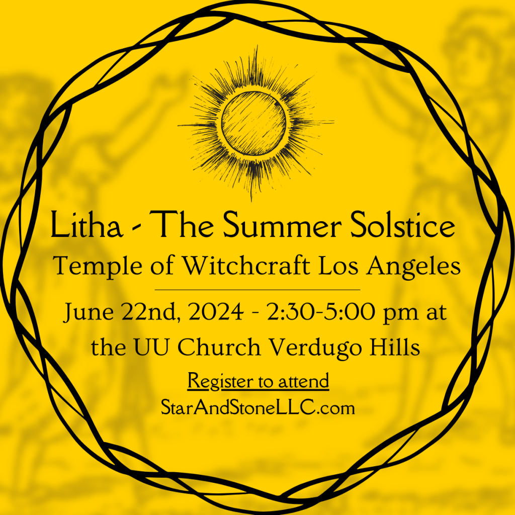 Join the Temple of Witchcraft Los Angeles as we open the gates and celebrate Litha, the Summer Solstice. Join us as we cast the circle, and turn the Wheel of the Year, honoring the peak of the light, and the changing of the tides through ritual, magick, and community.
